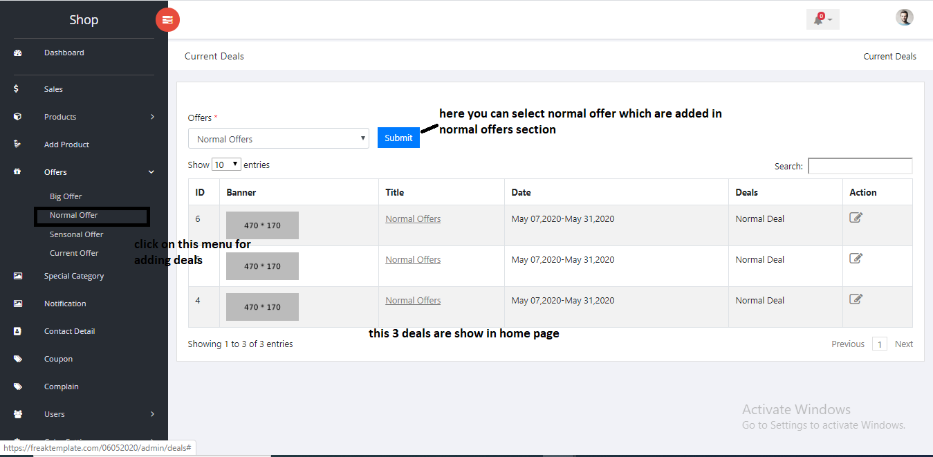 Current deals section You can only choose 3 normals offes which you want more hightlight to user